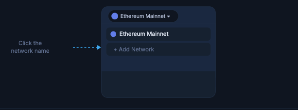 Click the network name at the top of your MetaMask wallet (e.g. “Ethereum Mainnet”). A dropdown will appear showing your saved networks.