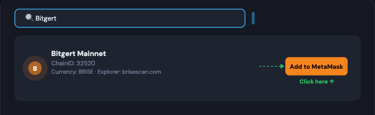 Method 1: Add Bitgert via ChainList (Recommended)