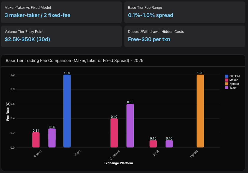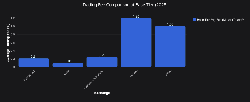 ROI Implication: For a trader executing 100 monthly trades ($1,000 average), annual costs range from ~$120 (Bybit) to $1,200+ (eToro/Uphold) — a 10x cost differential critical for margin traders or high-frequency strategies.